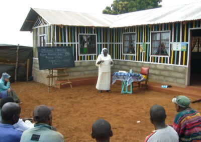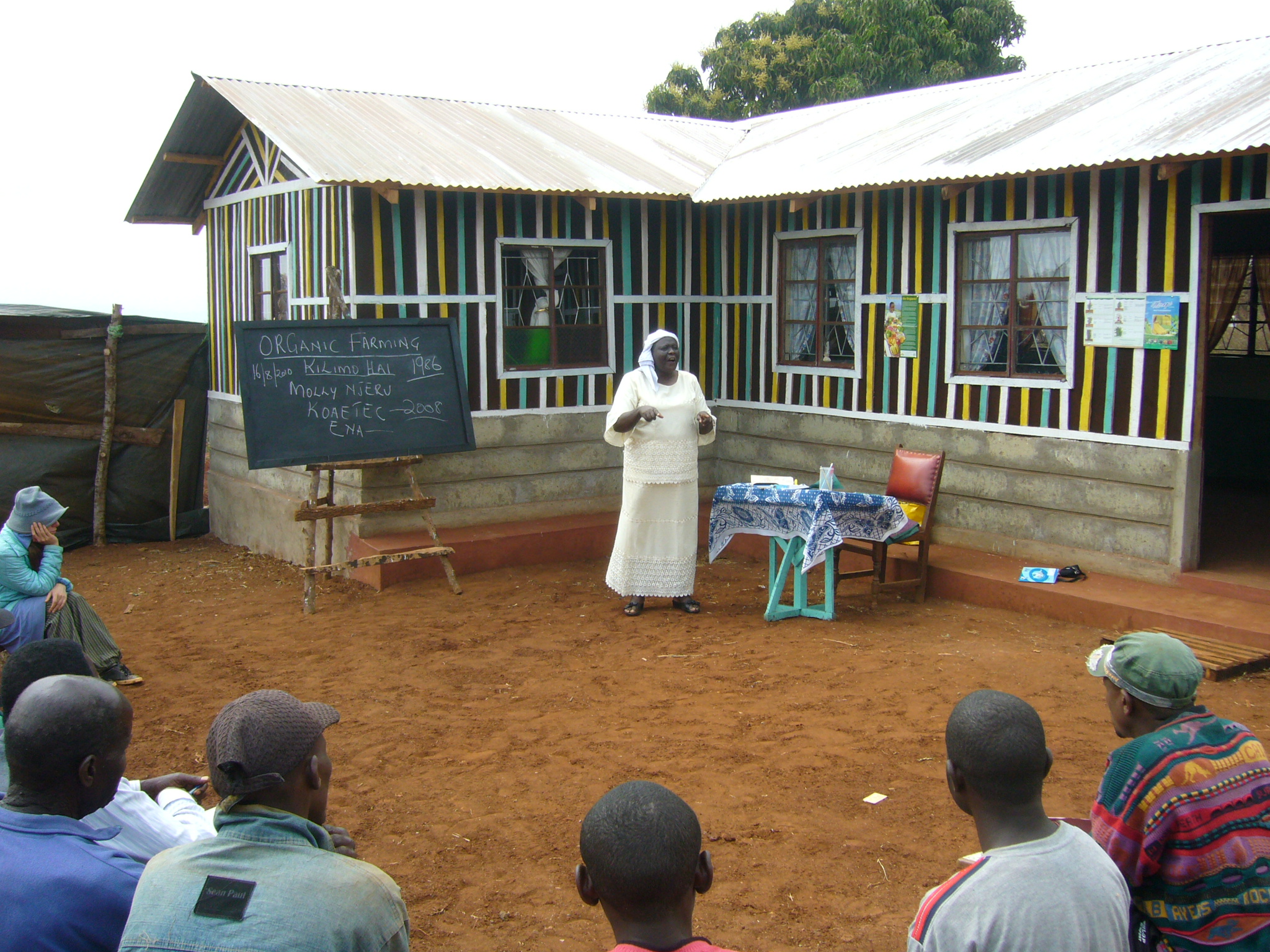 Cours d'Agriculture biologiqueQuelques jours après l’inauguration de notre Centre Social, en 2010, nous avons ouvert le cours d’agriculture biologique dispensé par un technicien agronome du « KOATEC Institute de la ville kényane d’Embu. 97 personnes s’étaient inscrites à ce cours gratuit.